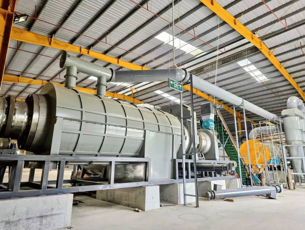 GREENPOWER представляет современную пиролизную печь барабанного типа, предназначенную для непрерывной карбонизации биомассы с ипользованием процесса пиролиз. Система исключает образование побочных жидких продуктов пиролиза биомассы и дает возможность сертификации древесного угля, как биочар по установленным стандартам Puro earth.