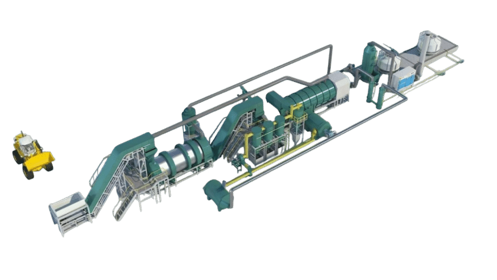 GREENPOWER представляет современную пиролизную печь барабанного типа, предназначенную для непрерывной карбонизации биомассы с ипользованием процесса пиролиз. Система исключает образование побочных жидких продуктов пиролиза биомассы и дает возможность сертификации древесного угля, как биочар по установленным стандартам Puro earth.